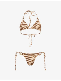 PRODUCT DETAILS - Zimmermann bikini set - 80% polyamide, 20% elastane - Top: Triangle shape, self-tie straps, zebra pattern - Bottom: Mid-rise, elasticated waistband, self-tie straps, zebra pattern - Machine wash cold - True to size - Model is 5ft 10in/1.78m and wears a size small - Lightweight, stretchy - For hygiene reasons, we are unable to exchange or refund this product if the protective adhesive strip has been removed. Ref: R04555145