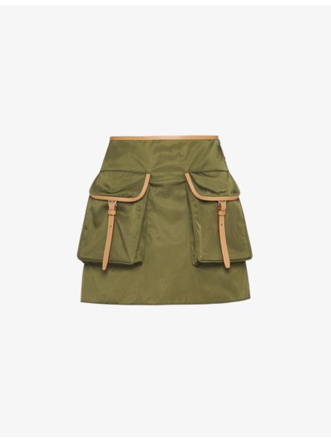 Re-Nylon patch-pocket mid-rise recycled-nylon and leather mini skirt