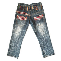 Distressed Denim - NYLAUS Distressed Double Waist MultiZipper Punk Bondage Pant