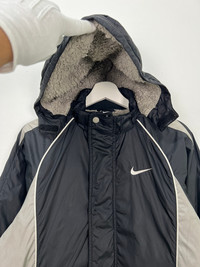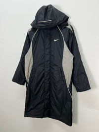 Vintage Nike Big Swoosh Inner Fleece Hooded Long Jacket