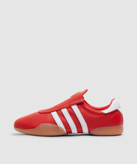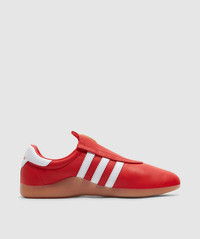 Inspired by early 2000s martial arts footwear, the Taekwondo Mei sneakers offer an elevated take on a clean, minimalist design. Reimagined in vibrant hues, they feature contrast accents, including the signature 3-Stripes and debossed Adidas logo. The laceless, slip-on construction ensures both style and agility, making them a standout addition to any wardrobe. • Slip on • Rubber and leather upper • 3-Stripe design • Debossed branding • Rubber sole • Item code: JR2646 Product Information • 4109957