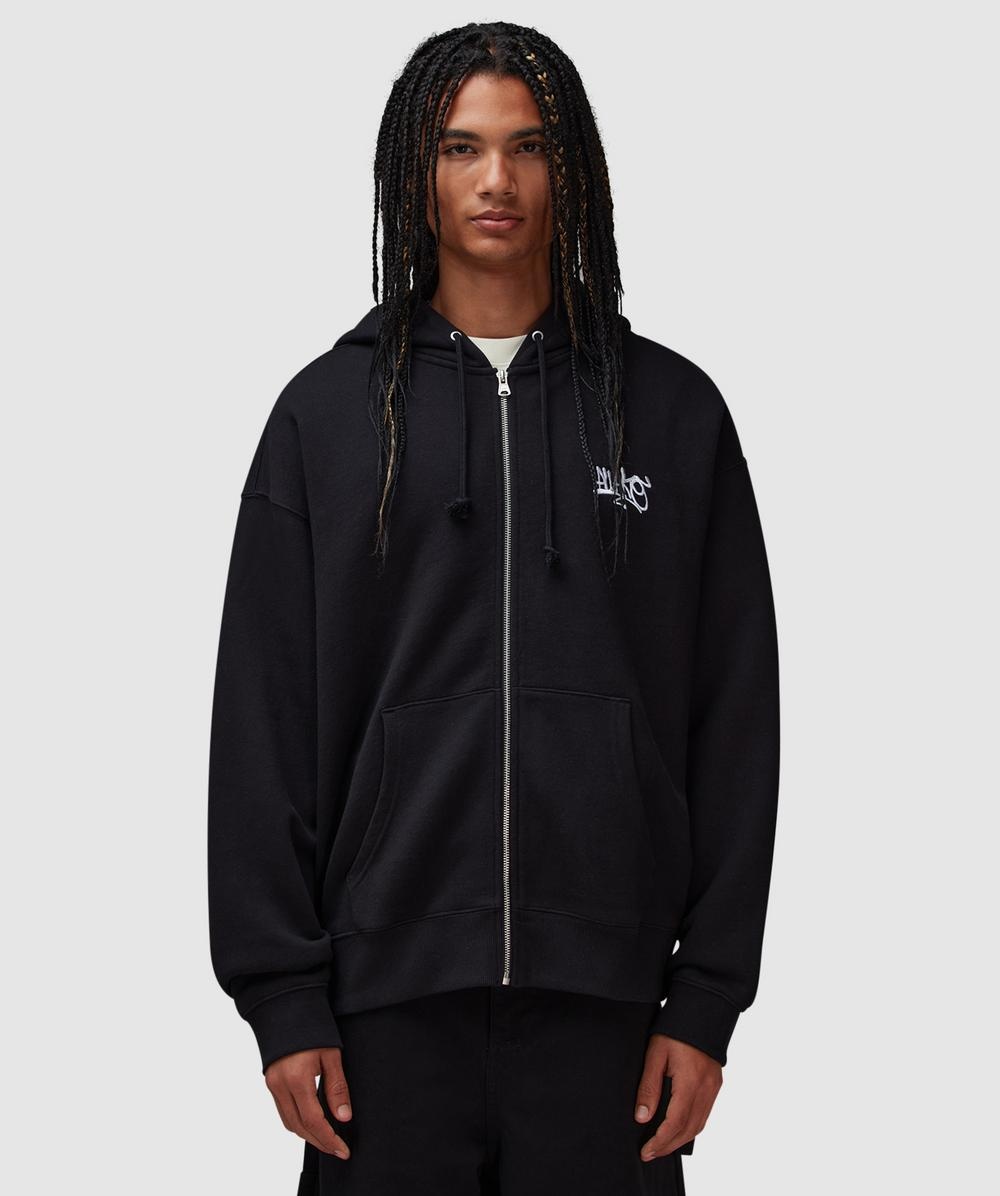 Inspired by 90s New York, Awake NY presents the All city zip hoodie. Add a touch of eclectic flair to your latest capsule with this staple. • Regular fit • Drawstring hood • Dual side pockets • Ribbed trims • 100% cotton • Item code: AWK-SP25-HD005 BLACK Product Information • 4111908