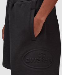 Awake NY captures the heartbeat of the city in its latest collection. The Debossed sweatshort takes a familiar silhouette and infuses it with the brand's artistic graphics, creating a sophisticated and modern fit. • Regular fit • Elasticated waistband with drawcord • Dual side pockets • Back pocket • Embossed logo • 100% cotton • Item code: AWK-SP25-PA008 BLACK Product Information • 4111912