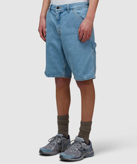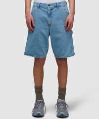 Taking cues from classic workwear pants, the Single knee denim short from Carhartt WIP offers a utilitarian inspired aesthetic with a softer feel - a durable choice suited for the warmer days. • Regular fit, knee finish • Zip fly fastening • Triple stitching • Woven logo patch on reverse • 12oz Dearborn canvas • 100% Cotton • Item code: I032026 01A3 Product Information • 4099771