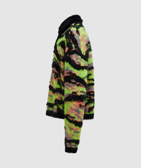 Free-spirated storytelling and a love of Americana are at the apex of ERL. The Tiger rave knitted quarter zip jumper pays homage to the city where founder Eli Russel Linnetz spent his formative years. Look to this latest iteration for a playful addition to your contemporary capsule. • Regular fit • Zip closure • Ribbed trims • 41% Recycled Nylon 23% Mohair 19% Polyamide 9% Wool 6% Acrylic 2% Metallic Fibre • Item code: ERL06N007 Product Information • 4089244