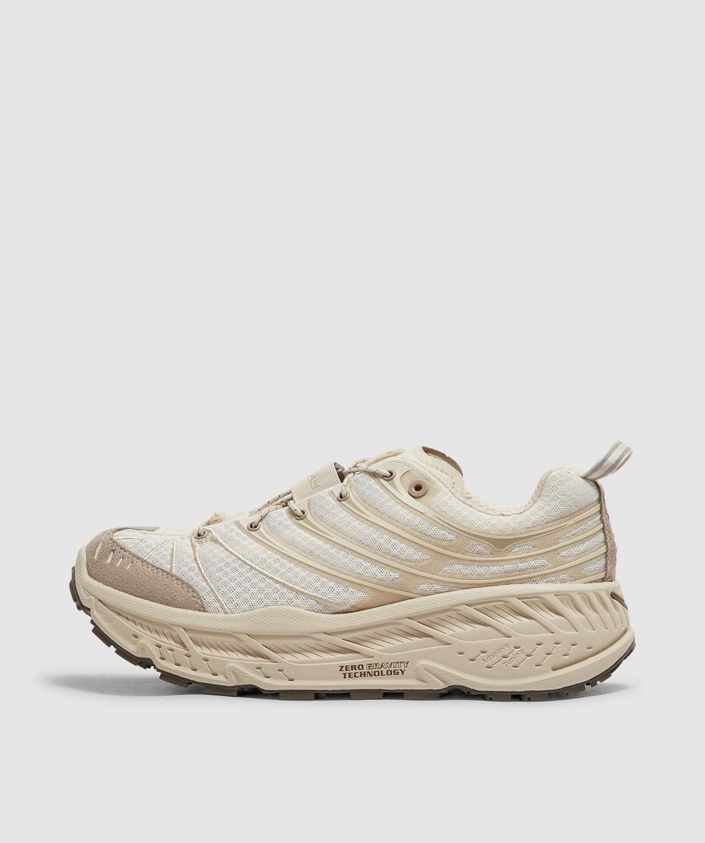 For durable outdoor footwear, look to the HOKA Stinson EVO OG sneaker. With its perfect blend of Y2k style and rockered geometry, you'll conquer any terrain with ease from late night city walks to the mountain tops. • Low padded collar • Mesh underlay • TPU film overlay • Speed lacing system • Embroidered details • Microfiber toe cap • Rubber sole • Item code: 1155350-OTTM Product Information • 4113659