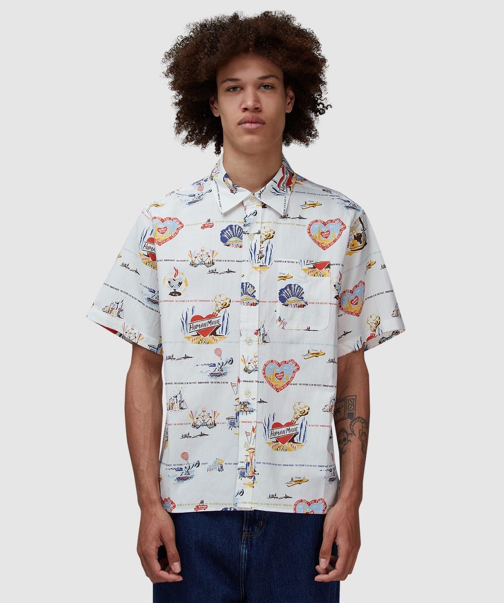 Accented with Nigo’s signature graphic affinities, Human Made introduces All over print travel shirt. Synonymous for their fun, playful spirit, look to this latest iteration for a classic silhouette with a twist. • Regular fit • Classic collar • Full button closure • Single chest pocket • Printed graphic branding • 20% cotton, 25% linen, 55% rayon • Item code: HM29SH017 CREAM Product Information • 4115828