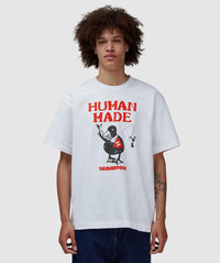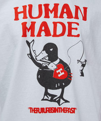 Human Made's newest collection showcases exceptional Japanese craftsmanship and whimsical designs influenced by global pop culture. The Fishing duck t-shirt is a standout piece, perfect for enhancing your streetwear wardrobe. • Regular fit • Ribbed crewneck • Printed graphic motif to front & reverse • Woven logo tab on sleeve • 100% cotton • Made in Japan • Item code: HM29TE026 WHITE Product Information • 4115838