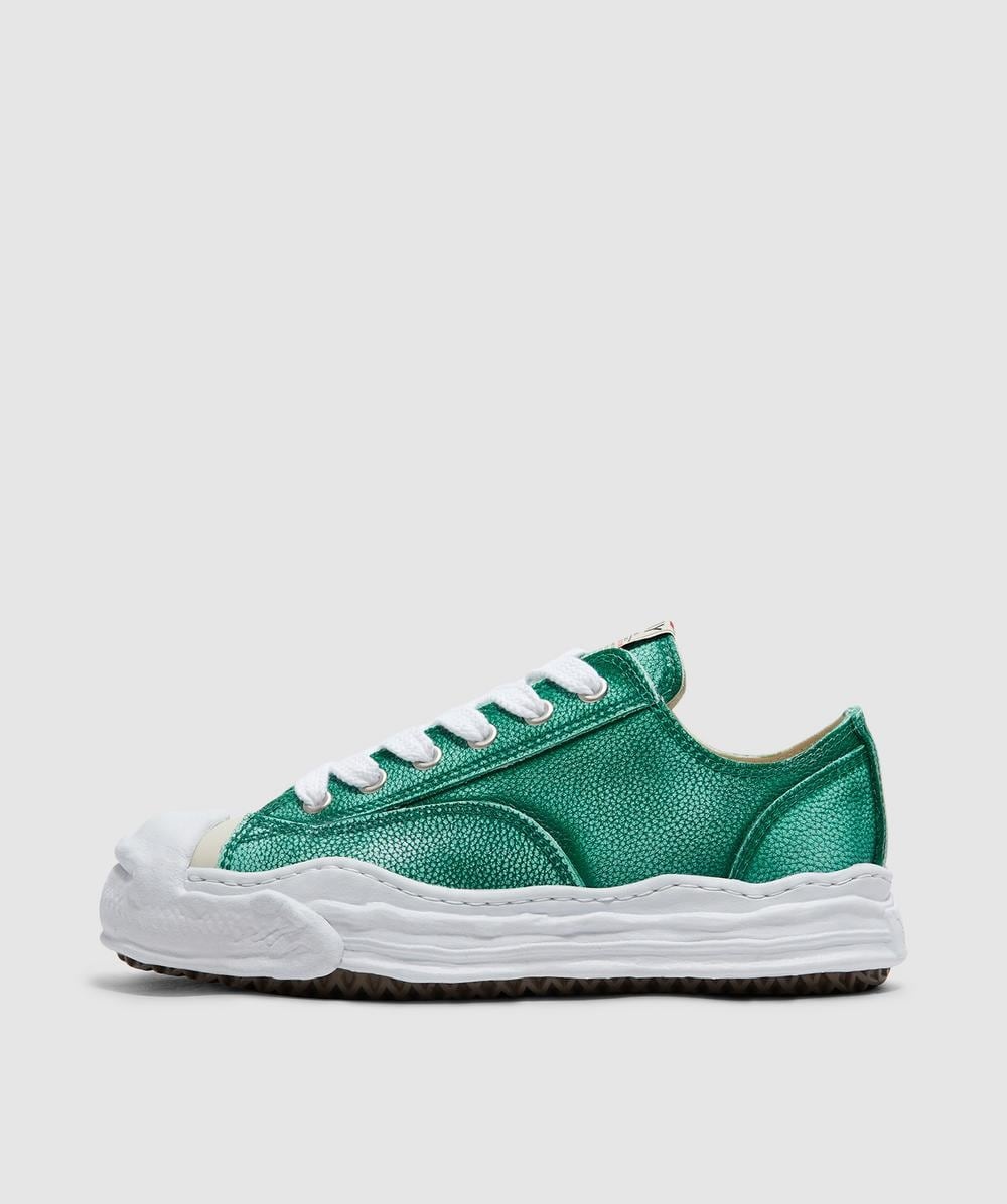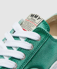Maison Mihara Yasuhiro, known for his innovative reinterpretations of classic sneaker styles, introduces the Hank low brushed shrink leather sneaker. With brushed leather uppers, this avant-garde design adds a sophisticated touch to a timeless silhouette. • Low padded collar • Lace fastening • Brushed leather upper • Brand detailing to tongue and insole • Hand crafted rubber sole • Item code: A14FW743 GREEN Product Information • 4113026