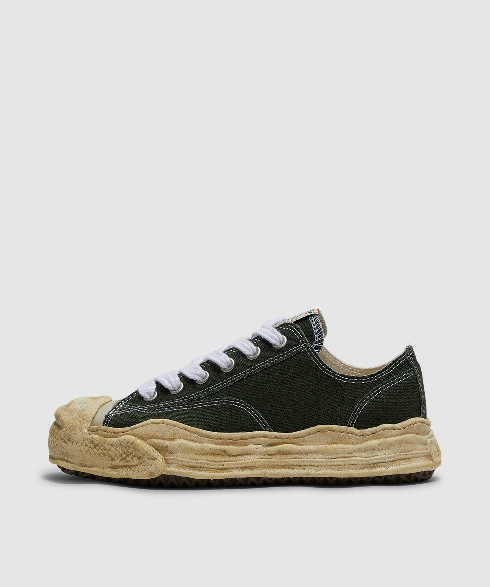 For a sporty inspired finish to your footwear rotation, look to the Hank low original sole sneaker from Maison Mihara Yasuhiro. This latest iteration sees the designer add his signature experimental spin on a classic varsity silhouette for a playful edge. • Low padded collar • Branding to tongue & rear & woven logo branding tab • Contrast stitching • Branded insole • Canvas uppers • Signature hand moulded rubber outsole • Item code: A13FW733 GREEN Product Information • 4106320