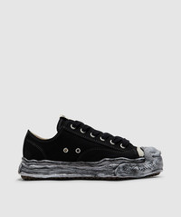 Maison Mihara Yasuhiro introduce their latest sneaker, a twist on a classic design. The Hank low top sneaker sees the designer add his signature experimental take on a silhouette for a playful edge. • Low padded collar • Branding to tongue & rear & woven logo branding tab • Contrast stitching • Branded insole • Canvas uppers • Signature hand moulded rubber outsole • Item code: A14FW744 BLACK Product Information • 4113027