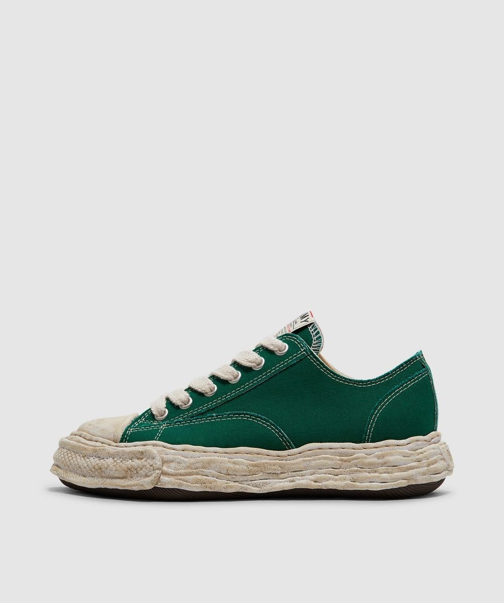 Known for his unique reinterpretations of classic varsity styles, Maison Mihara Yasuhiro presents the Peterson Low Original Sole Canvas Sneaker. This design infuses an everyday staple with his signature flair, offering an elevated and distinctive finish. • Low padded collar • Branding to tongue & rear & woven logo branding tab • Contrast stitching • Branded insole • Canvas uppers • Signature hand moulded rubber outsole • item code: A14FW726 GREEN Product Information • 4113023