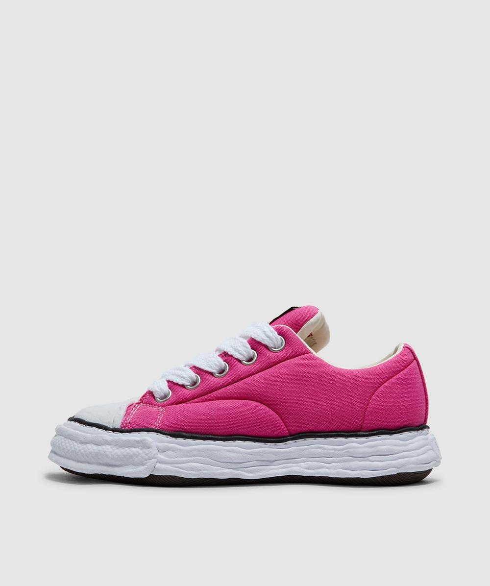 Renowned for reimagining classic varsity styles with a unique twist, Maison Mihara Yasuhiro's Peterson 23 padded low sneaker brings a sophisticated edge to a timeless staple. Elevate your everyday look with this standout piece. • Low padded collar • Calf leather upper • Lace fastening • Contrast stitching • Branded insole and tongue • Signature hand moulded rubber outsole • item code: A14FW723 PINK Product Information • 4113019