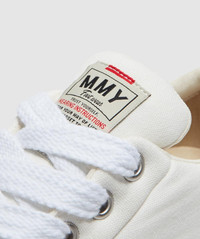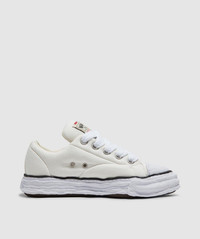 Renowned for reimagining classic varsity styles with a unique twist, Maison Mihara Yasuhiro's Peterson 23 padded low sneaker brings a sophisticated edge to a timeless staple. Elevate your everyday look with this standout piece. • Low padded collar • Calf leather upper • Lace fastening • Contrast stitching • Branded insole and tongue • Signature hand moulded rubber outsole • item code: A14FW723 WHITE Product Information • 4113016