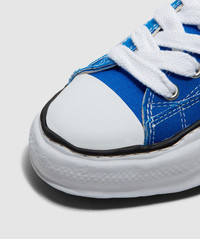 Synonymous for twisting conventional takes on classic varsity style silhouettes and adding his signature flair, the Peterson low canvas sneaker sees designer Maison Mihara Yasuhiro offer an elevated finish to an everyday staple. • Low padded collar • Branding to tongue & rear & woven logo branding tab • Contrast stitching • Branded insole • Canvas uppers • Signature hand moulded rubber outsole • Item code: A01FW702 CL BLUE Product Information • 4113010