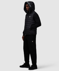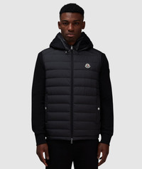 Designed for athletes and everyday explorers, Moncler channels alpine luxury from top to toe. introducing its latest collection, beyond the seasons and trends look to the Bourget hooded down vest for a staple piece. • Regular fit • Full zip closure • Hood with logo band and zip closure • Pockets with snap button closure • Zip inner pocked • 100% recycled polyester • Item code: K10911A00151- 597YW 999 Product Information • 4113916