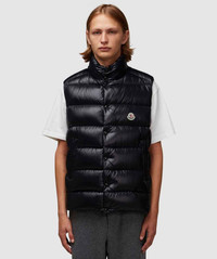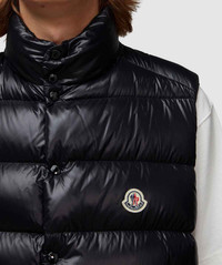 Prolonging the labels reputation as the leading skiing outfitters, the Tibb gilet sees Moncler continue to bring alpine wear to the urban landscape. Where optimal style and comfort is guaranteed, look to this latest offering for a must have addition to your everyday capsule. • Regular fit, hip finish • Funnel neck • Full zip closure & button placket fastening • Applique branding tab • Dual front zip pockets • Goose down-fill • 100% Nylon • Item code: 1A00096 - 68950 999 Product Information • 4092599