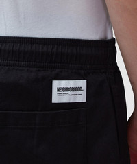 Japanese streetwear brand Neighborhood takes cues from American biker culture and rock and roll subcultures. Look to the Easy pant for an essential staple for your casual wardrobe. • Regular fit • Elasticated waistband with drawcord • Hip label detailing • Dual side pockets • 100% cotton • Item code: 251TWNH-PTM01 BLACK Product Information • 4116437