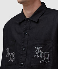 Crafted with pride, Neighborhood use intricate embroidery detailing that blends American biker culture with Japanese craftsmanship. Elevate your wardrobe with this versatile staple. • Regular fit • Point collar • Button fastening • Dual embroidered chest pockets • Dual front pockets • Back logo branding • Button fastening cuffs • 90% cotton, 10% linen • Item code: 251AQNH-SHM03 BLACK Product Information • 4116423