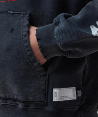 + Bounty Hunter Savage Distressed Printed Cotton-Jersey Hoodie Black