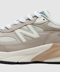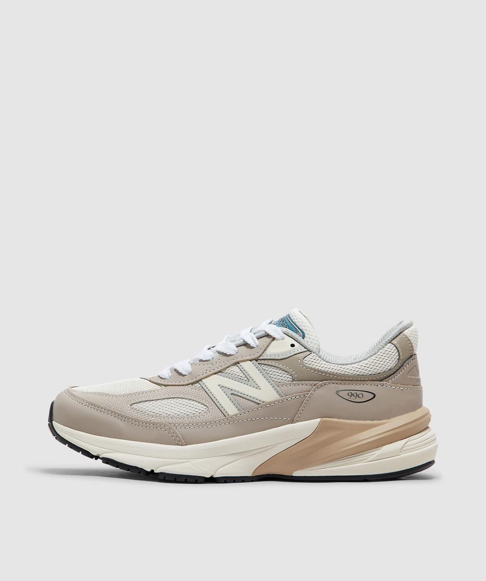990v6 Leather-Trimmed Mesh Sneakers Beige