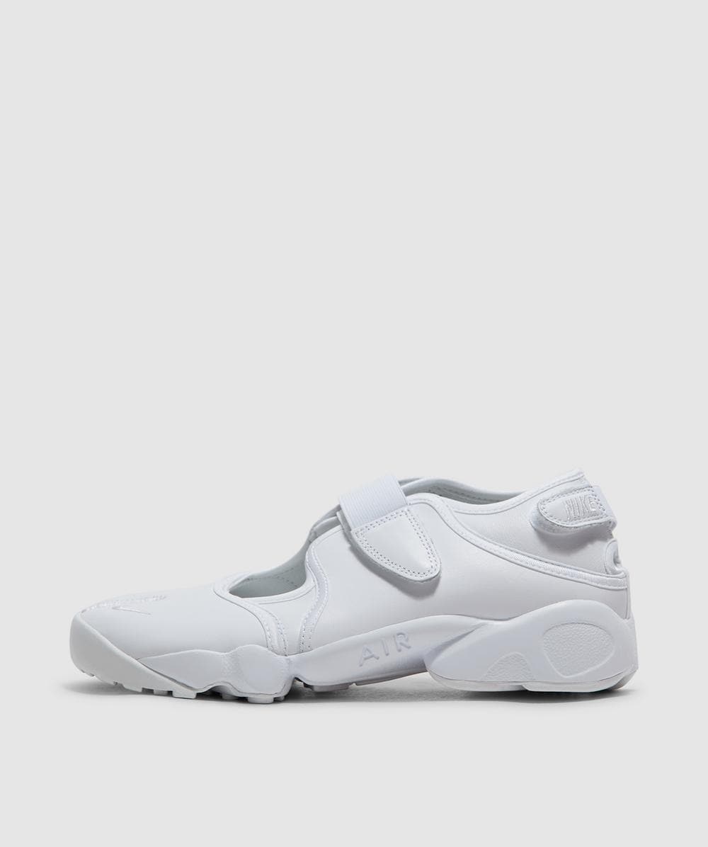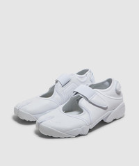 The Women’s Air Rift Sneaker is the latest offering from sporty spearheads Nike. Designed with comfort and durability in mind, this stand-out silhouette offers a playful aesthetic, for an everyday style no matter the terrain. • Velcro strap fastening • Logo branding on front, side & rear • Signature Swoosh design • Leather uppers • Split toe design • Nike air unit in heel • Rubber toecap & outsole • Item code: HM5737-100 Product Information • 4119169