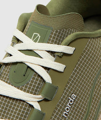 Reach higher ground with the 002 sneaker from Norda. Inspired by Canada’s toughest conditions, look to this latest iteration for unrivalled performance, allowing you to reach new heights. • Low padded collar • Branding to tongue, side & rear • Diamond designed norda™ laces made with Dyneema®, provide 4x the strength of a standard lace, and higher abrasion resistance • Ultra light and comfortable sock, gusset construction for the ultimate fit. • Hi-Vis Reflective - front to rear for 360° visibility • Woven uppers with bio-based Dyneema® for the highest performance, abrasion resistance and the lightest footprint • Midsole Cushioning - norda™ x Vibram® SLE • Norda™ x Vibram® exclusive design formation outsole with Litebase® and Megagrip® Rubber. 5mm lugs • item code: 002 - M - SAGE Product Information • 4116265