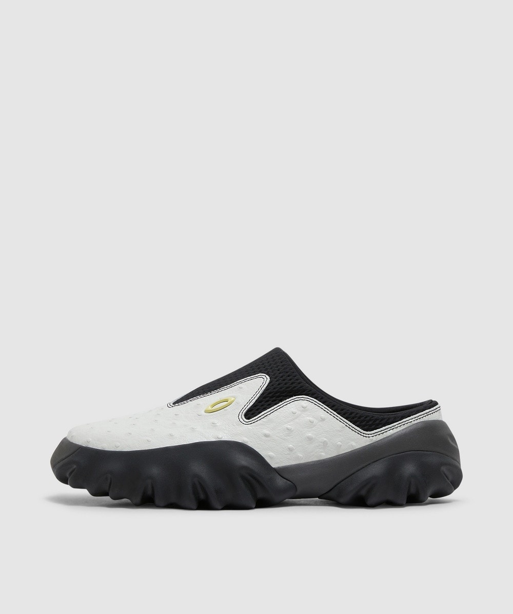 Oakley Factory Team celebrates evolution through a focus on shapes and material compositions on the Ostrich chop saw mule, featuring a unique padded neoprene collar for a comfortable, non-restrictive fit that adapts to your foot shape. • Slip on • Logo motif branding • 69% Calf Leather, 31% Polyester uppers • 100% Lycra lining • 50% Ethylene Vinyl Acetate, 50% Rubber Tread Outsole • Item code: BDS24S07003862WH01 Product Information • 4099308