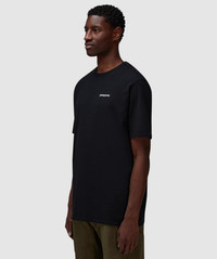 Crafted from 100% recycled fabrics, the Responsibili-Tee embodies Patagonia's dedication to sustainability. This latest offering provides comfort and durability while also reduces waste and carbon emissions, making it a perfect choice for the eco-conscious consumer. • Regular fit • Crewneck • Graphic detailing to chest and back • 50% recycled cotton/50% recycled polyester • Item code: 38504 BLK Product Information • 4120535
