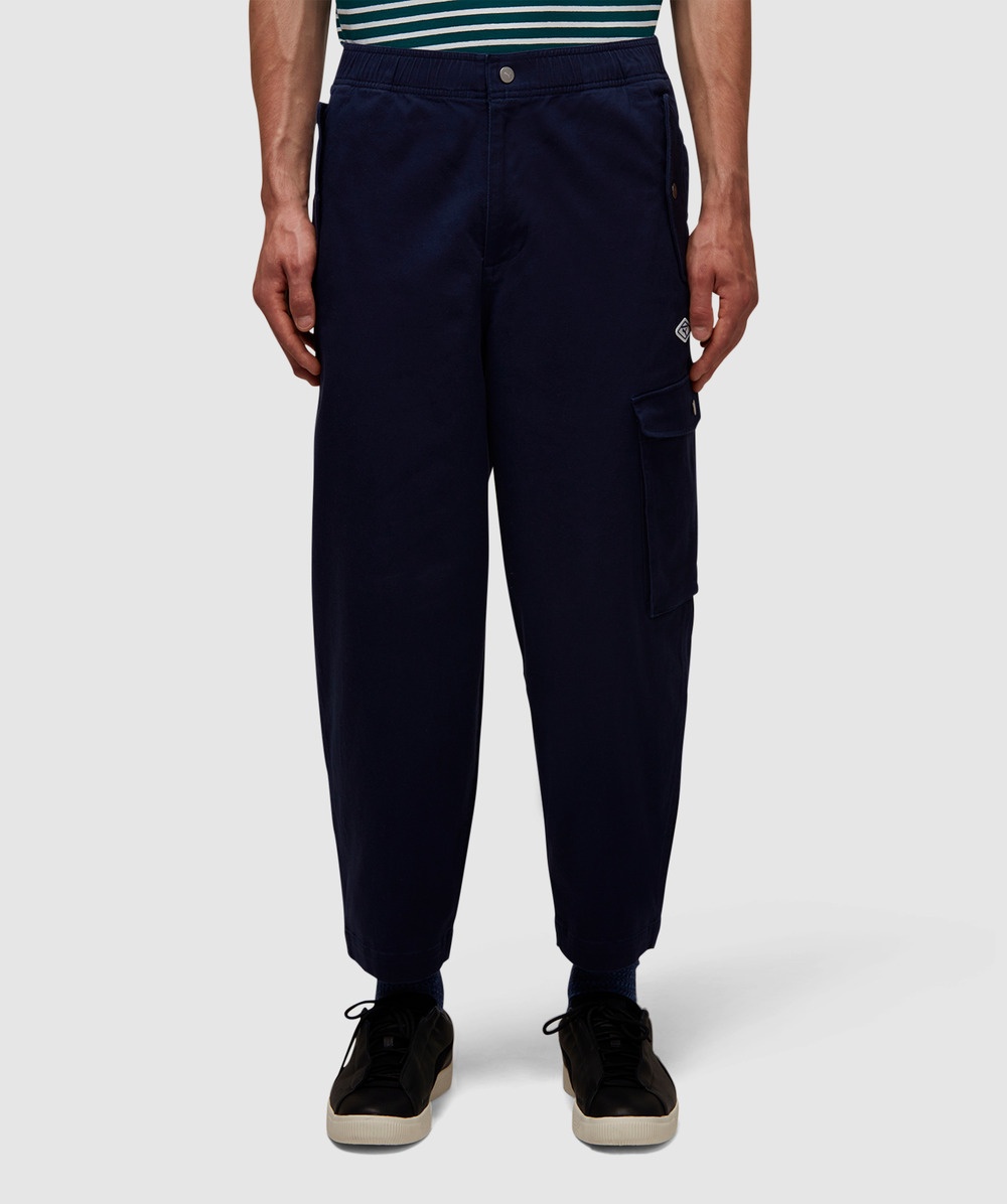 Cantered around neo-workwear, the latest collaboration between Puma and Nanamica sees the labels reimagine workwear with a clean aesthetic. Look to the X Nanamica woven pant for a premium update to an everyday silhouette. • Relaxed fit • Elasticated waistband • Rubber logo branding • Dual button pockets on front & reverse • Gusset insert • Bungee cord and metal stopper attached to hem • 97% cotton, 3% elastane • Item code: 539878 06 Product Information • 4086942