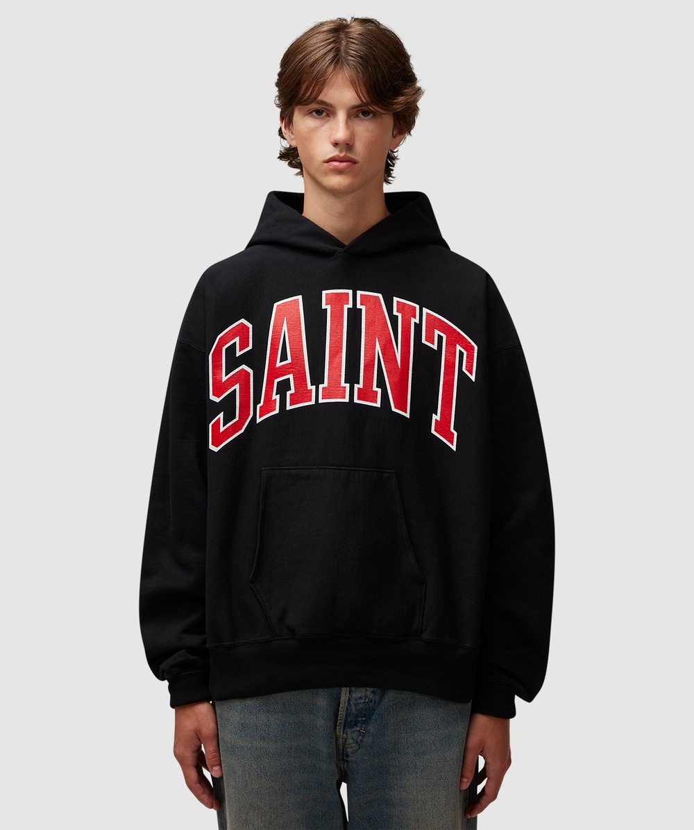 Offering a pre-loved aesthetic with a contemporary edge, SAINT MXXXXXX (Saint Micheal) presents the Arch Saint hoodie. Look to this latest offering for an elevated addition to your streetwear capsule. • Relaxed fit • Fixed hood • Printed logo branding • Kangaroo pouch pocket • Ribbed cuffs & hem • 89% cotton, 8% polyester, 3% rayon • Item code: SM-A23-1111-030 Product Information • 4093260
