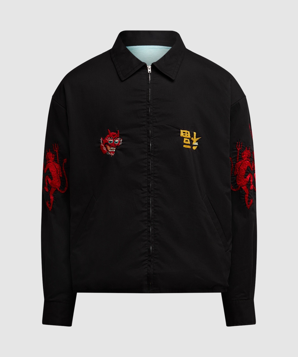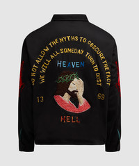 Propelled by a pre-love allure, SAINT MXXXXXX (Saint Micheal) is the brand immortalising an aged aesthetic. Where classic silhouettes are reworked and distressed, look to the Vietnam jacket for an elevated addition to your streetwear capsule. • Oversized fit • Dropped shoulder panelling • Oxford collar • Full zip closure • Embroidered graphic branding on front & reverse • 100% Nylon; 100% Acetate • Item code: SM-S23-1111-069 Product Information • 4085852
