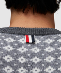 Embrace the turn of the season with the Snowflake fair isle jacquard knit sweater from the luxury fashion house Thom Browne. This latest offering sees the designer draw upon the classic silhouette for a contemporary finish. • Regular fit • Crew neck • Ribbed trims • Buttoned cuffs & side hem • Woven logo tab • 100% wool • Made in Italy • Item code: MKA463A-Y1007-982 Product Information • 4096966