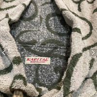 This hoodie was bought on Buyee.jp/Mercari from japan. It was brand new and unworn by the previous owner, and worn only to try on by myself. The measurements are in the last photo. This is a gorgeous, comfortable piece perfect for anyone remotely interested in Kapital's design or Boho/hippie aesthetic. The fabric is like a super light, baggy french terry. Colours are beige and moss green.