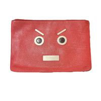 Fendi Monster Pouch in great condition! No stains or cracks outside. The silver toned face has scratches. Inside is clean minor discoloration in some spots. Hardware is in working order. W12” x H8” (approx) #fendi #fendibag #fendimonster