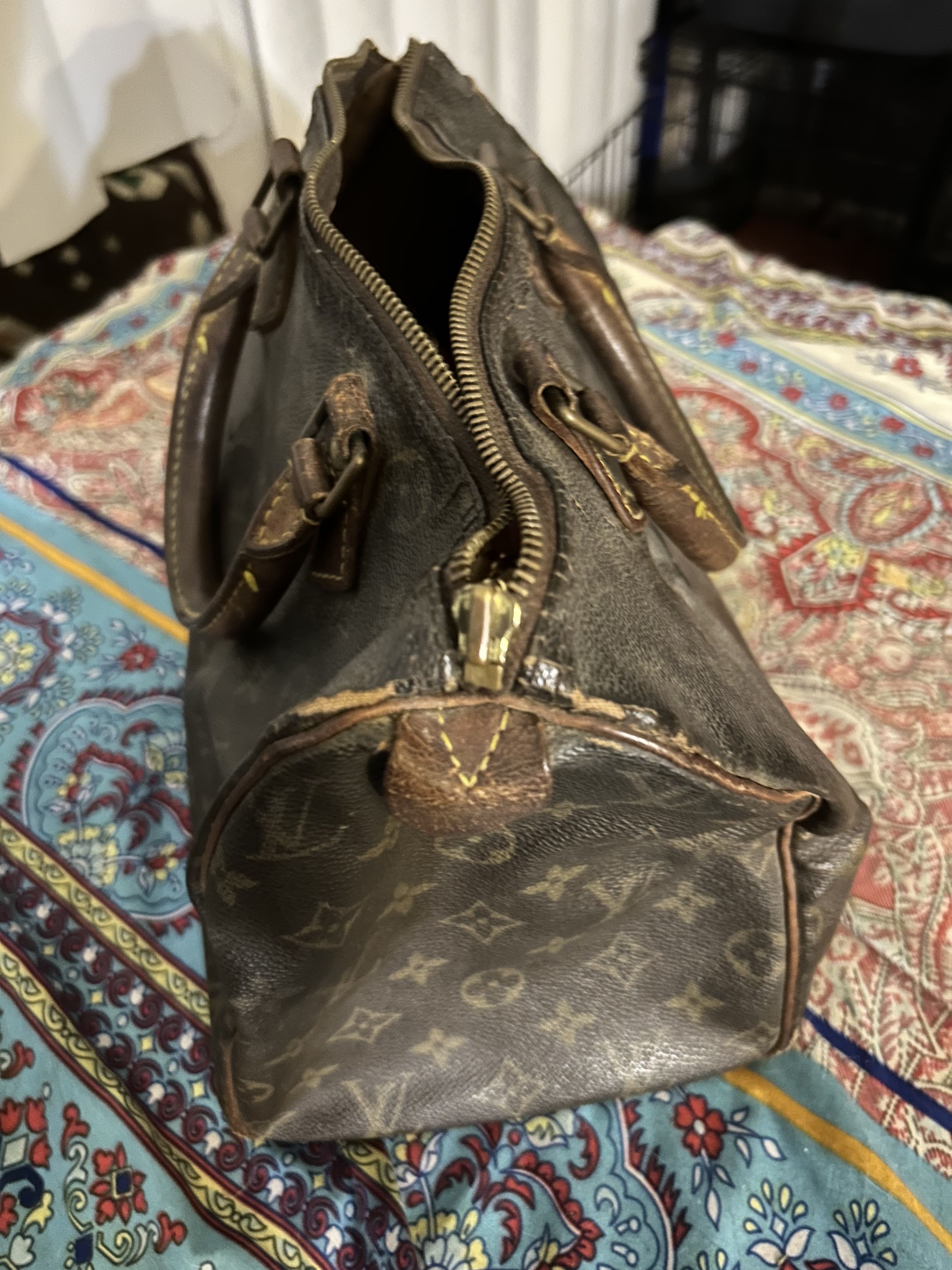Vintage and worn but functional . If you’ve ever wanted real luxury items but not for a luxury tag, this is your bag!