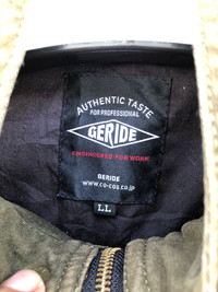 Japanese Brand Geride Military Desingn Jacket Tag Read : Geride Measurement : Armpit to Armpit :21.5" lenght (shoulder to end of garment):24.5" Condition : Very Good Condition(Used) Material : Cotton Payment Accepted : Paypal Only Note : An Item That Has Been Used Or Worn Previously. See Our Listing For Full Details And Description Of Any Imperfections. Please Don't Expect It To Be Like New Or In Pristine Condition (used clothing). Please Leave Your Phone Number On The Note While Make A Purchase. Don't Forget To Check Out My Store For More Great Stuff Thank For Visited.n