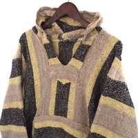 Vintage Classic Mexican Baja Striped Hoodie Navajo Poncho
