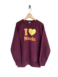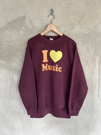 Vintage I love Music Sweatshirt Tag Read : free delivery Measurement : Armpit to Armpit :21.5" lenght (shoulder to end of garment):27" Condition : Very Good Condition(Used) Material : Cotton Payment Accepted : Paypal Only Note : An Item That Has Been Used Or Worn Previously. See Our Listing For Full Details And Description Of Any Imperfections. Please Don't Expect It To Be Like New Or In Pristine Condition (used clothing). Please Leave Your Phone Number On The Note While Make A Purchase. Don't Forget To Check Out My Store For More Great Stuff Thank For Visited.