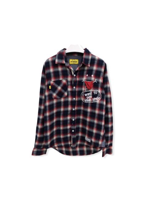 Japanese Brand - Japanese Brand Up Smile Plaid Tartan Flannel Shirt 👕