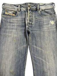 Streetwear - Vintage Diesel Industry Blue Wash Distress Wide Leg Jeans