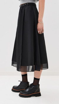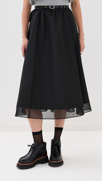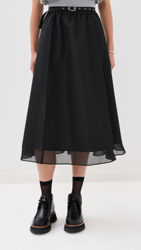 Belted Midi Skirt with Chiffon Hem