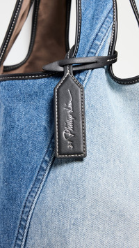 - Denim - Leather trim - Matching zip pouch included - Two-toned design - Open top - Textile lining - Weight: 6oz / 0.17kg - Imported, China Style #PHLII25588 Size & Fit Length: 15.75in / 40cm Height: 13in / 33cm Depth: 7.5in / 19cm Handle drop: 8.75in / 22cm