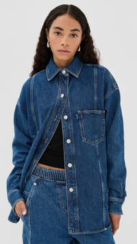 - Fabric: Mid-weight, non-stretch denim - Logo patch at back - Contrast plaid lining at cuffs - Collared neck - Long sleeves with button cuffs - Button placket - Patch breast pocket - Patch front pockets - Shell: 100% cotton - Unlined - Dry clean - Imported, Turkey Style #PHLII26085 Size & Fit Model measurements: Size XS: Anisa (5'8.5") usually wears size XS Measurements from size S Length: 27.5in / 70.0cm, from shoulder