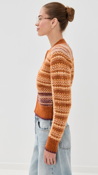 - Fabric: Mid-weight jacquard knit with stretch - Fair isle pattern - Crew neck - Long sleeves - Two-way zip closure - Shell: 78% alpaca/20% polyamide/2% elastane - Dry clean - Imported, China Style #PHLII26084 Size & Fit Model measurements: Size XS: Margaret (5'11") usually wears size XS Measurements from size XS Length: 19in / 48.0cm, from shoulder