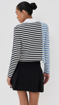 - Fabric: Lightweight jersey - Stripe print - Contrast panel with asymmetrical hem - Grosgrain trim with grommet accents - Collared neck - Long sleeves - Partial button placket - Shell: 100% cotton - Dry clean - Imported, China Style #PHLII25979