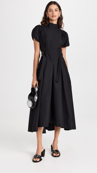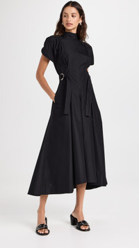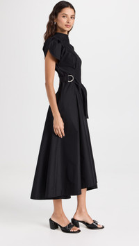 - Fabric: Mid-weight, non-stretch crisp poplin - Round neckline and short tulip puff sleeves - Adjustable D-ring buckle tabs - Silver-tone hardware - Hidden zip at back - On-seam hip pockets - Shell: 70% cotton/30% polyester - Wash cold - Imported, China Style #PHLII25047 Size & Fit Measurements from size 0 Length: 51.5in / 131.0cm, from shoulder