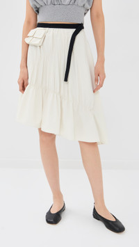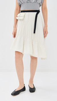 - Fabric: Mid-weight, non-stretch technical weave - Ruching at front - Fanny pack and contrast nylon belt at waist - Asymmetric hem - Hook-and-eye and hidden zip at side - Patch front pocket - Shell: 100% polyester - Unlined - Dry clean - Imported, China Style #PHLII26218 Size & Fit Model measurements: Size 0: Somin (5'10.5") usually wears size 0-2 Measurements from size 0 Length: 27.25in / 69.0cm