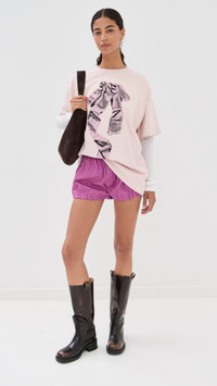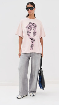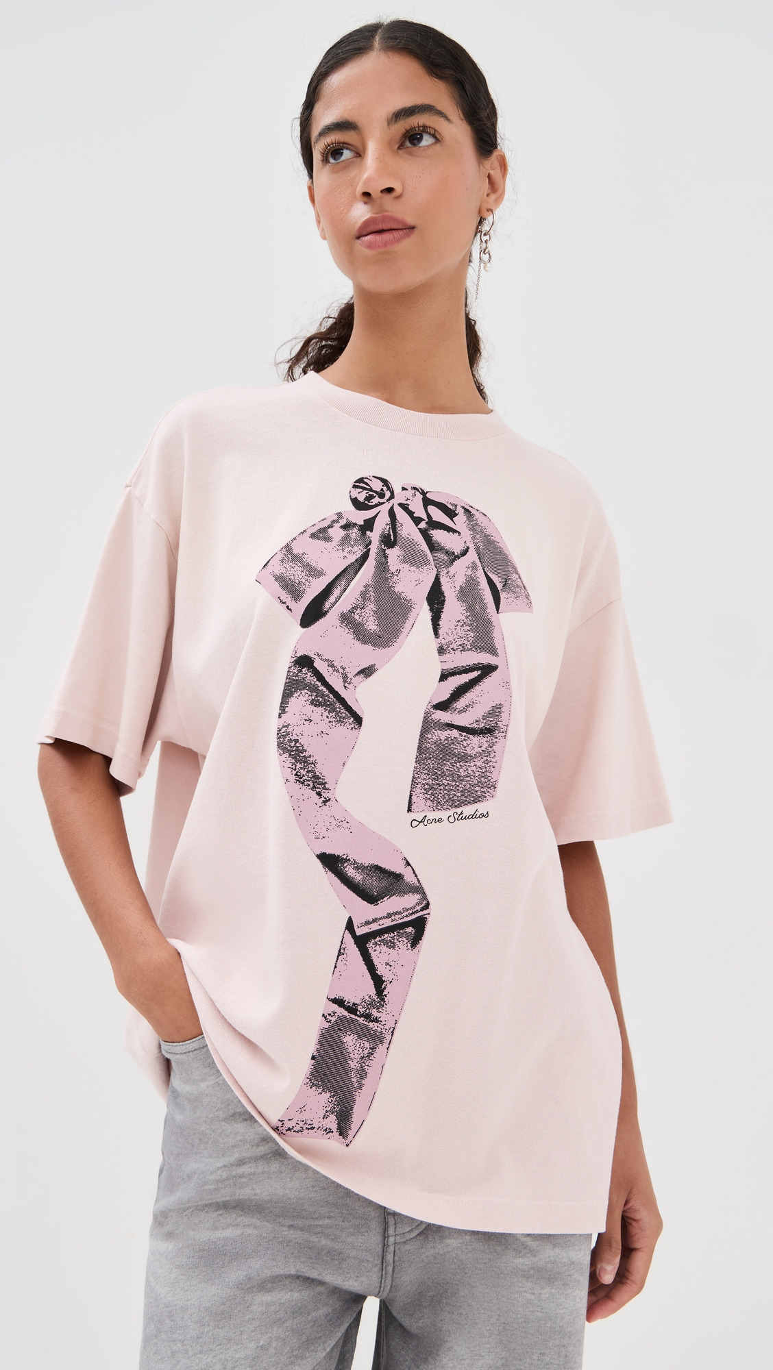 - Fabric: Mid-weight stretch jersey - Bow graphic at front - Crew neck - Short sleeves - Shell: 100% cotton - Wash cold - Made in Portugal Style #ACNDB32399
