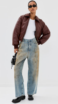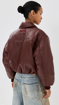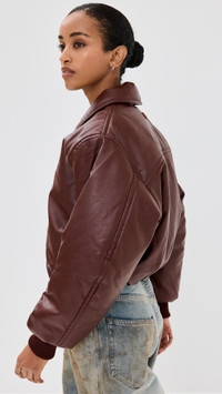 - Fabric: Mid-weight, non-stretch faux leather - On-seam hip pockets with snap closures - Ribbed cuffs - Collared neck - Long sleeves - Zip at front - Covered elastic waistband - Shell: 100% polyester - Lined - Lining: 100% viscose - Fill: 100% polyester - Dry clean - Imported, China Style #ACNDB32270 Size & Fit Model measurements: Size 32: Mical (5'10") usually wears size 32 Measurements from size 36 Length: 20.75in / 53.0cm, from shoulder